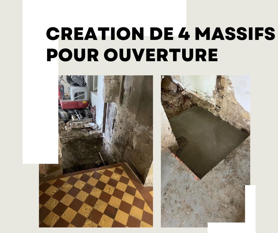 Création d'ouverture dans les murs pour la pose d'une porte et de deux fenêtres,