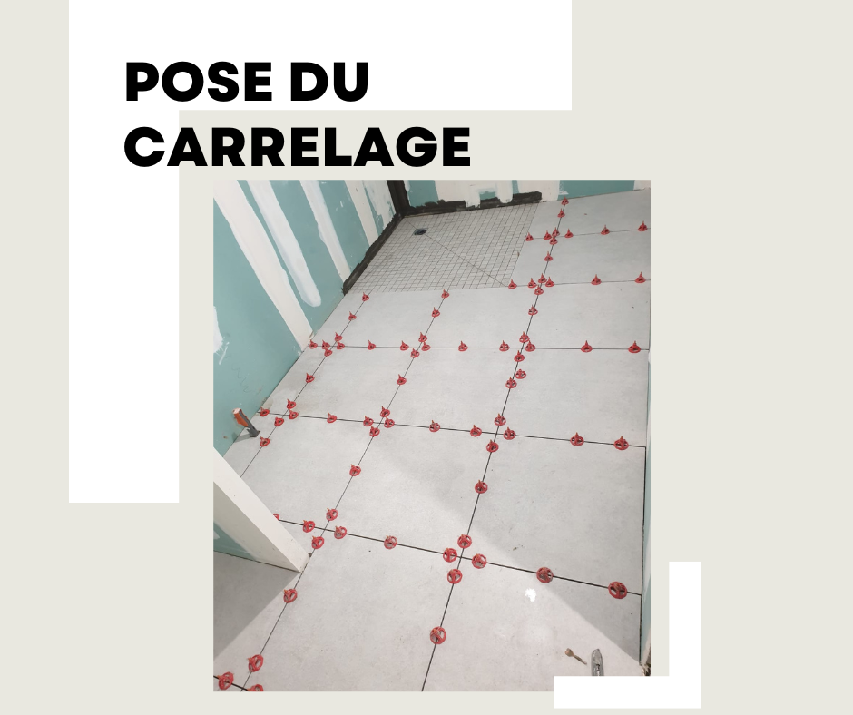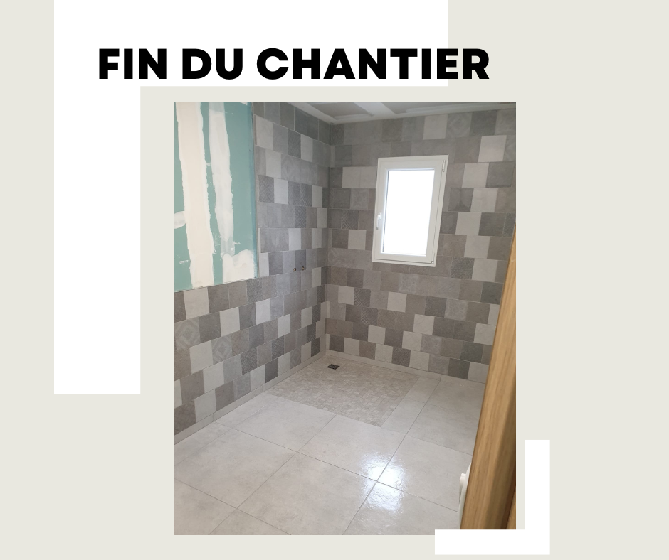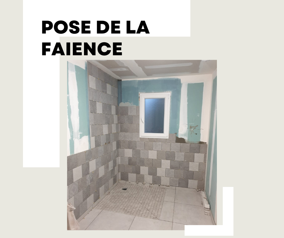 Pose d'un carrelage et d'une faïence dans une salle de bain d'une maison neuve à Beuvardes.
