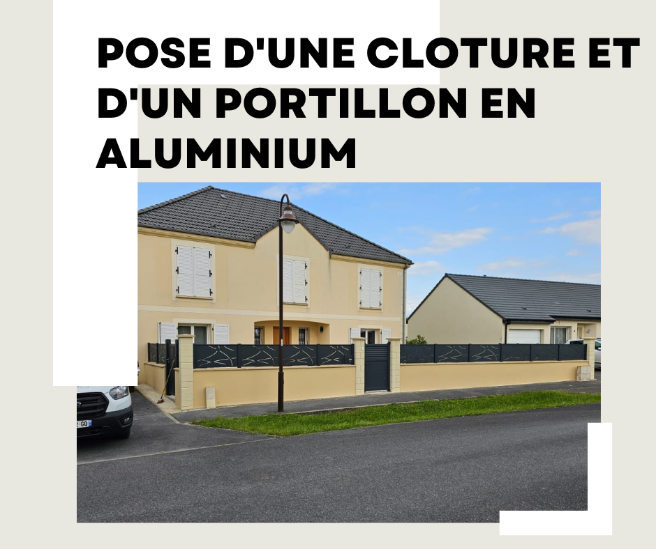 Pose d'une clôture et d'un portillon en aluminium anthracite.
