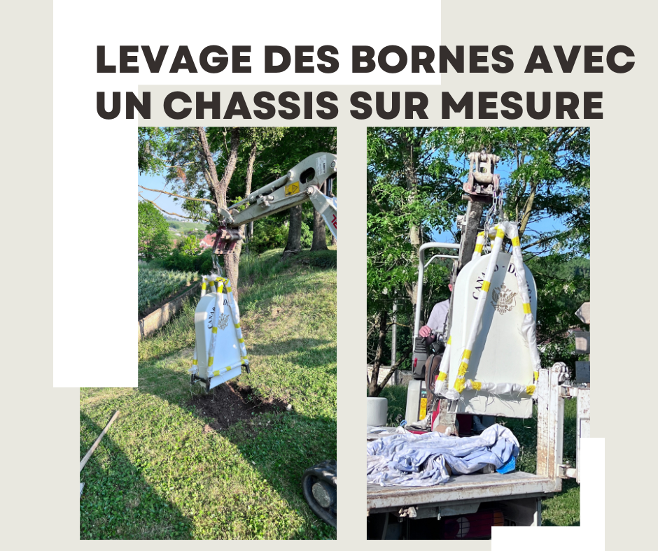 Pose des bornes à l'aide du châssis inventé spécialement pour ce projet.