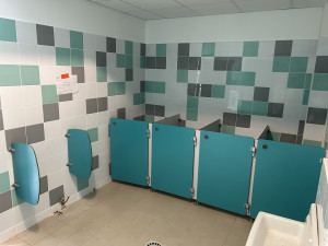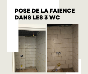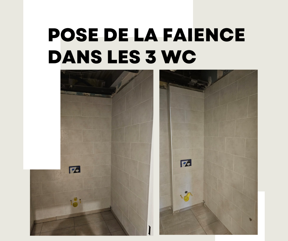 Pose de la faïence dans les 3 nouveaux WC du rez-de-chaussée.