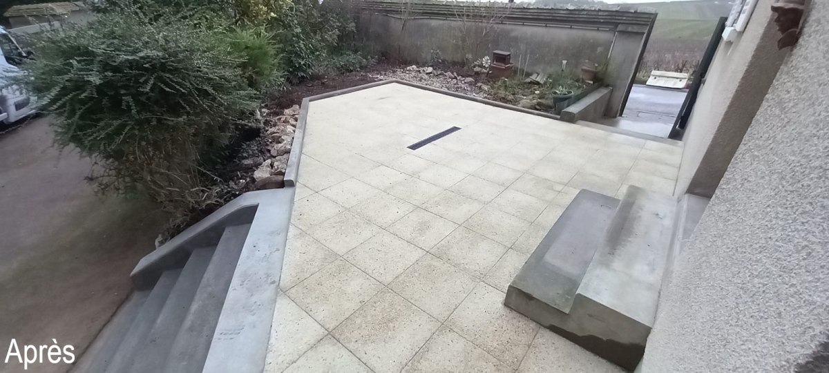 Rénovation d'une terrasse pour le gardien de la maison de Champagne Canard Duchêne à Ludes.