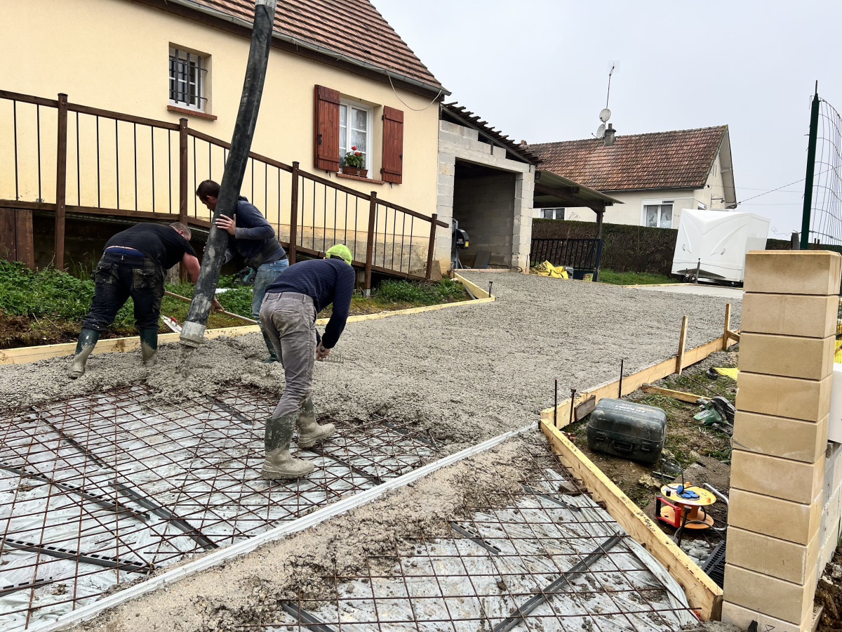 Création d'une rampe en béton pour un accès à la maison et au garage dans de bonnes conditions à Connigis.