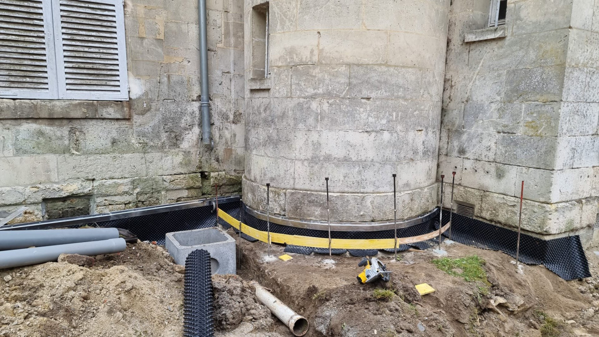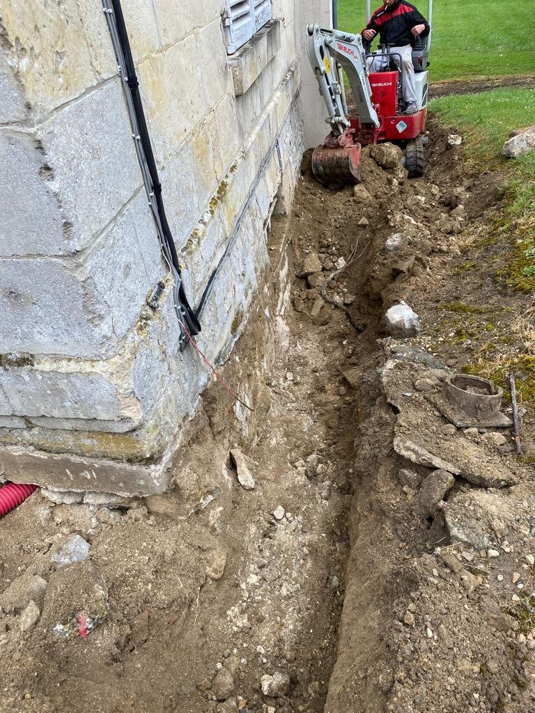 Réalisation d'un drainage autour d'une maison de ville à Vauxbuin.