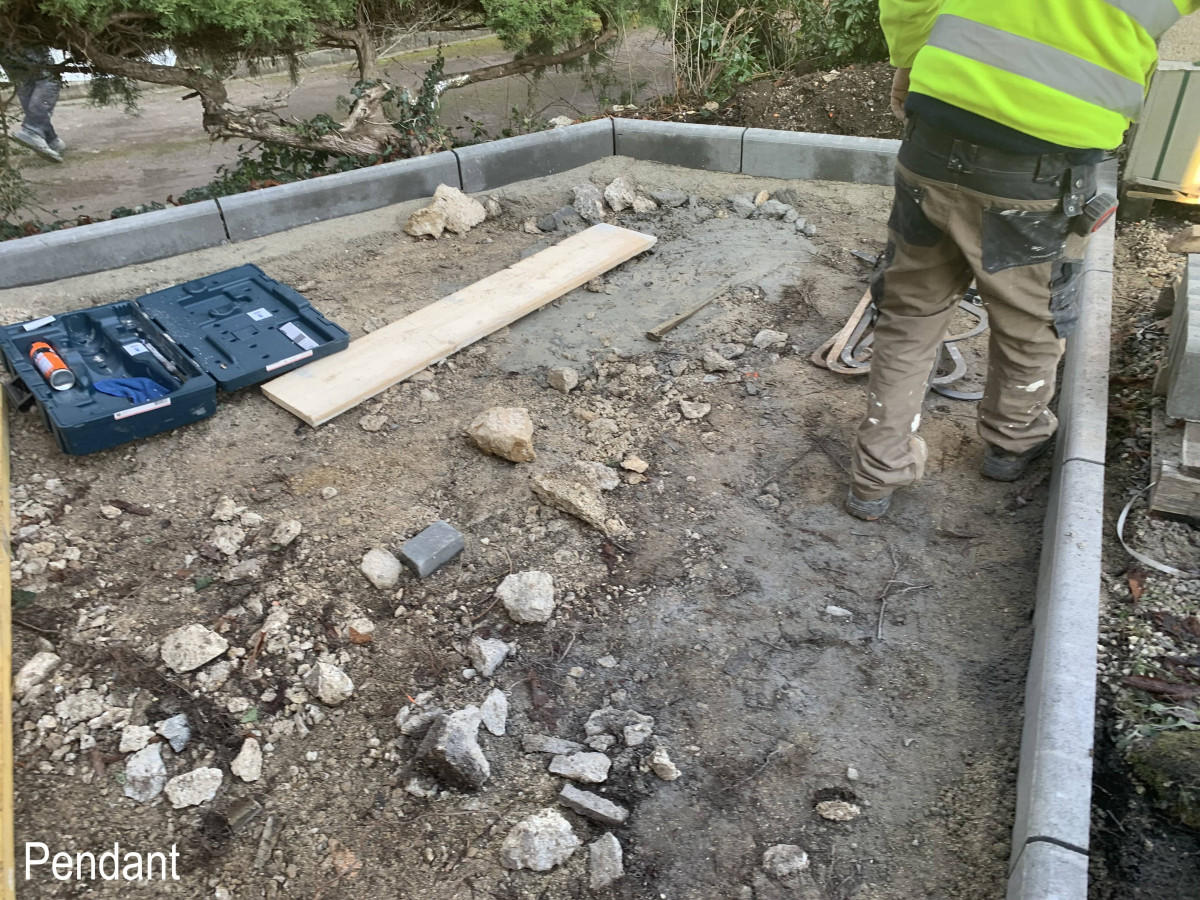 Réalisation d'un décaisser sur la terrasse,