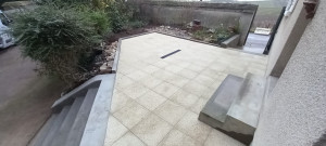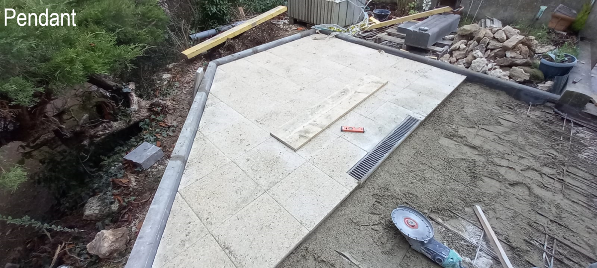Pose d'un caniveau au centre de la terrasse,